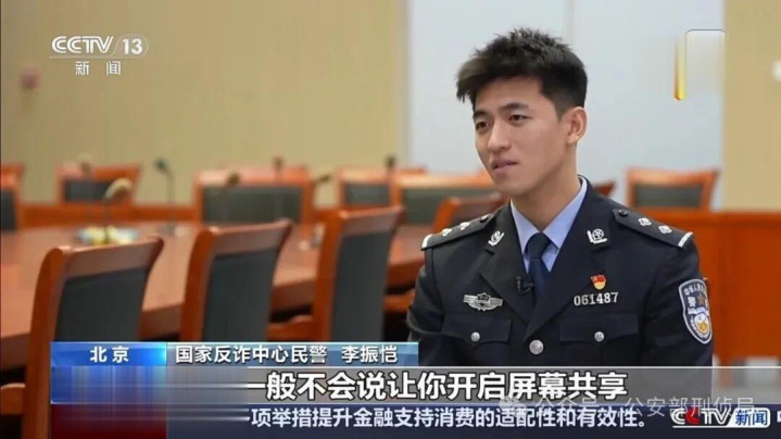 国家反诈中心民警李振恺:他迷惑性非常强,骗子一般不会说让你开启屏幕共享。骗子一般会说,我来远程帮你协作一下,远程指导你一下,远程教一下你怎么弄。所以说其实我们受害人可能刚开始都没有意识到,他是在开屏幕共享,所以这就是他的一个迷惑性,他其实就是在屏幕共享。